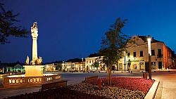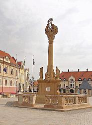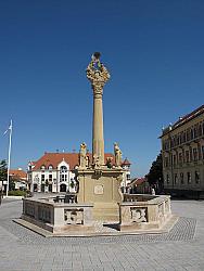 A Fő tér keleti végét a barokk stílusú Szentháromság-szobor zárja le. Festetics Pál állíttatta 1770-ben. Eredetileg a tér nyugati részén állott, századunkban helyezték mai, kevésbé forgalmas helyére. Fonadékos rácsozatú szép kőkerítése már a múlt században elpusztult. Háromszögletű, volutás talapzaton Szent Rókus, Szent Sebestyén, Szent Flórián és egy kis angyal szobra található, valamint magas, korinthoszi oszlop, tetején a hagyományos Szentháromság szoborcsoporttal